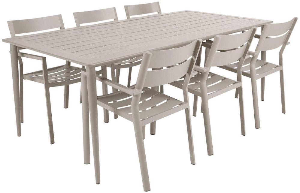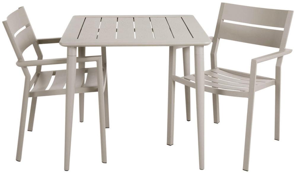 Delia är en modern kollektion trädgårdsmöbler från Brafab. En del av serien är den här karmstolen helt tillverkad av mattlackad aluminium. Stolen finns i färgerna antracitgrå, beige (khaki), grön (moss green och dusty green), röd (burnt paprika), ljusgrå, svart och vit. Modellen går bra att stapla för smidig förvaring.