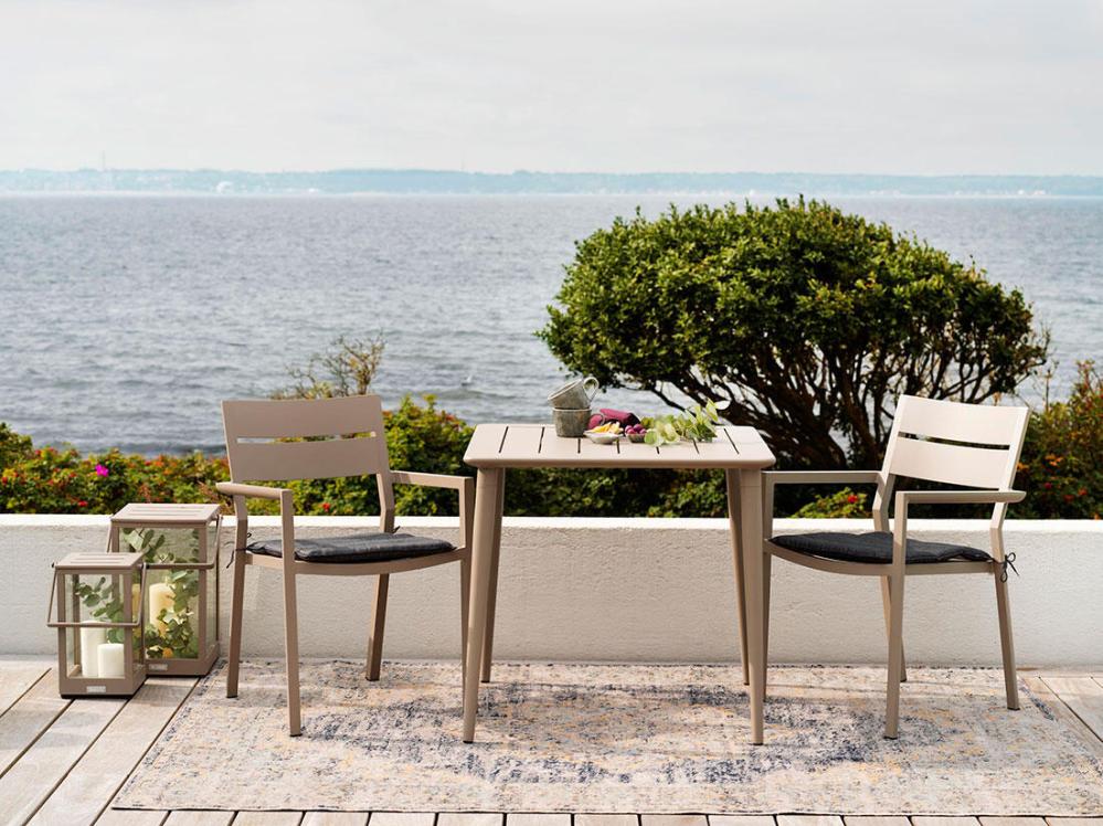 Stapelstolen Delia har ett modernt formspråk med snyggt utformade detaljer. I serien hittar du en rad andra möbler till uteplatsen, du hittar dem alla en bit ner på sidan under Liknande produkter. Där hittar du även den matchande produktserien Nimes från Brafab med flera storlekar av matbord.