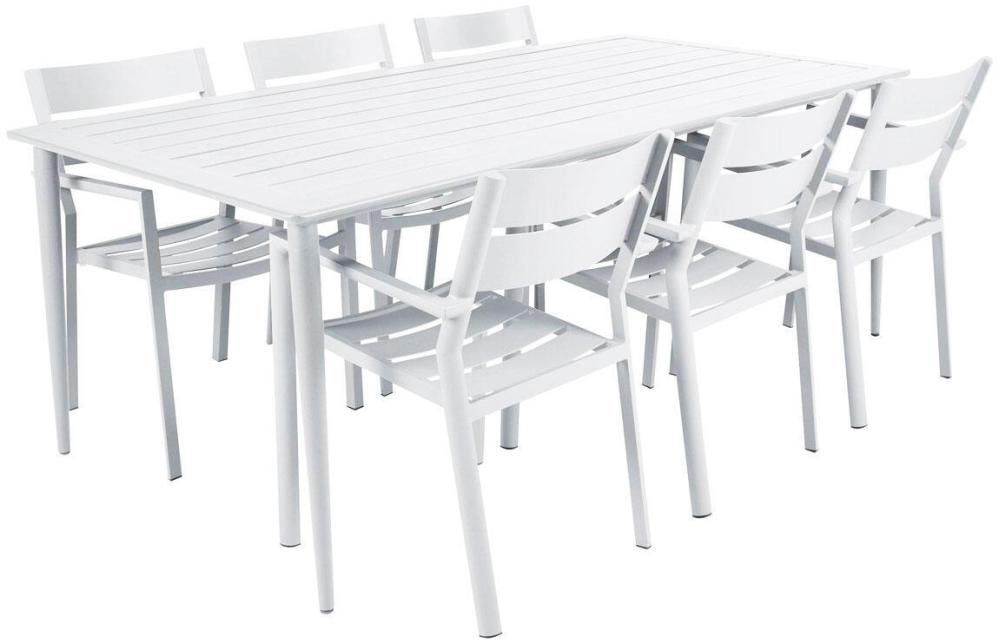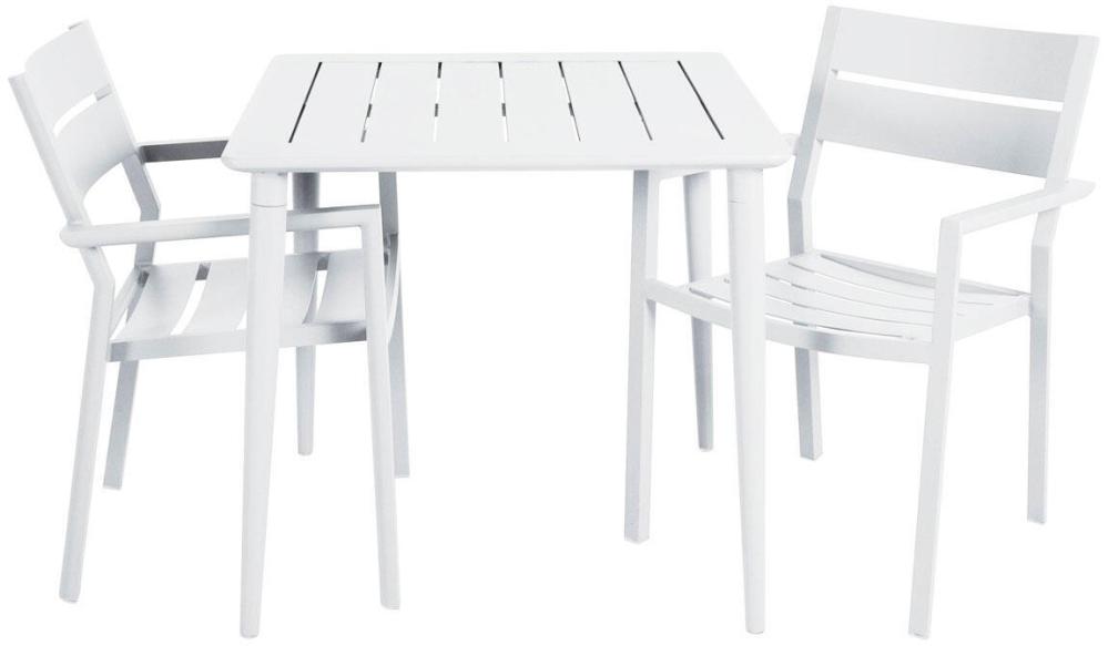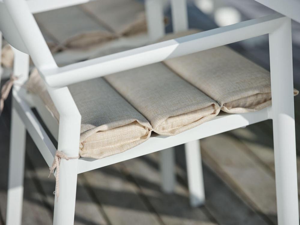 Delia är en modern kollektion trädgårdsmöbler från Brafab. En del av serien är den här karmstolen helt tillverkad av mattlackad aluminium. Stolen finns i färgerna antracitgrå, beige (khaki), grön (moss green och dusty green), röd (burnt paprika), ljusgrå, svart och vit. Modellen går bra att stapla för smidig förvaring.