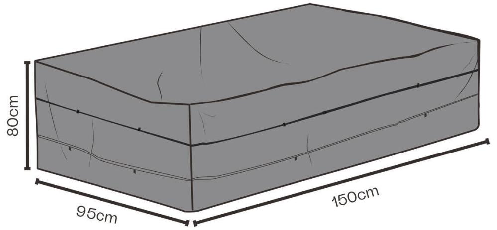 Det lätta materialet som används är en vattentät ripstop polyester (210D) med en baksida av TPU beläggning som gör att det andas och kan transportera ut fukt och förhindra uppkomsten av mögel. Tack vare det lätta och smidiga materialet är det lätt att använda, både när du sätter det på dina utemöbler och när du förvarar det i sin förvaringsväska (som ingår).