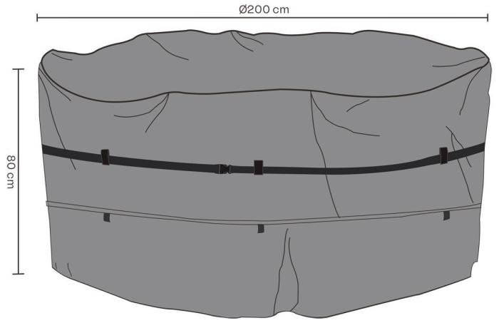 Det lätta materialet som används är en vattentät ripstop polyester (210D) med en baksida av TPU beläggning som gör att det andas och kan transportera ut fukt och förhindra uppkomsten av mögel. Tack vare det lätta och smidiga materialet är det lätt att använda, både när du sätter det på dina utemöbler och när du förvarar det i sin förvaringsväska (som ingår).