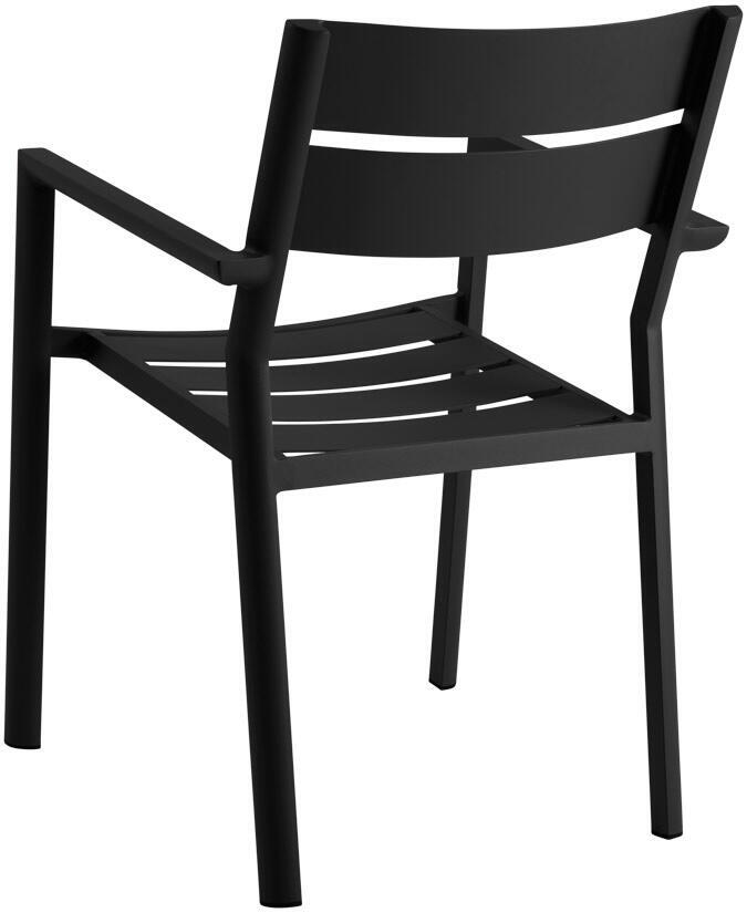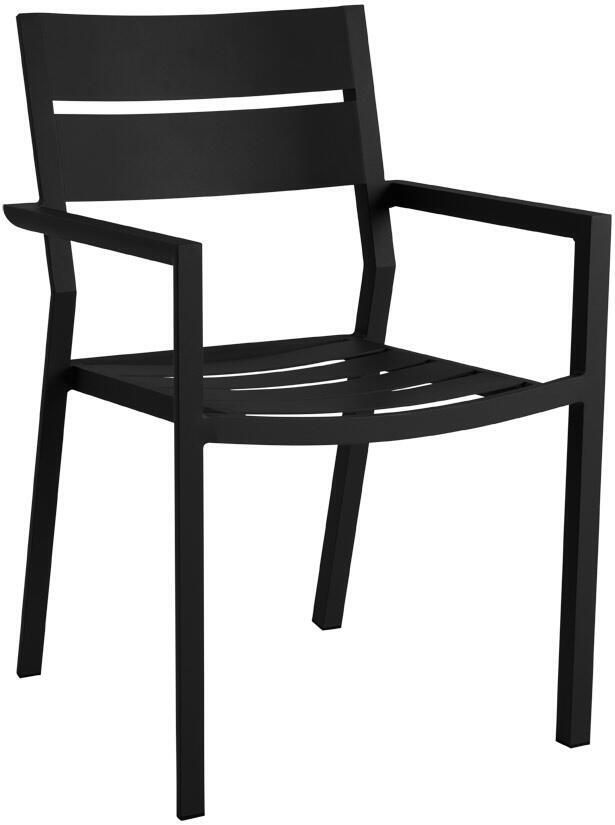 Matgrupp bestående av Nimes matbord 78x78 cm och två stycken Delia karmstolar. Välj på flera färger av mattlackad aluminium. Komplettera gärna med sittdynor för bästa komfort.