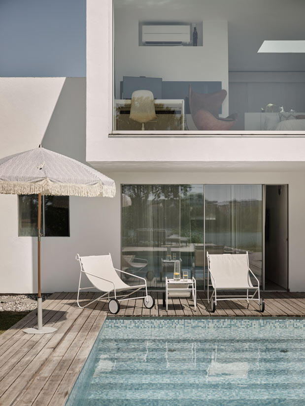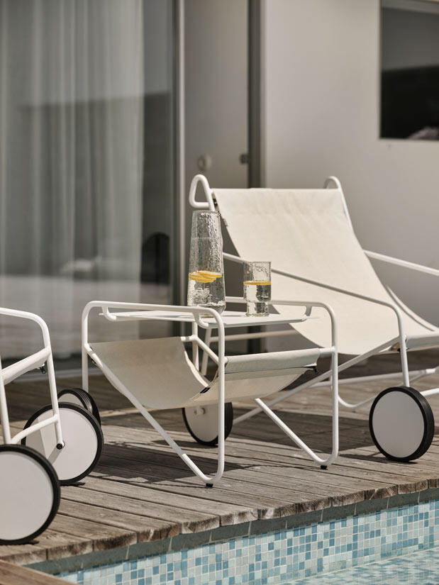 En lekfull, funktionell och iögonfallande möbel för poolkanten eller uteplatsen – Poul Table är omöjlig att gå förbi utan att dra på smilbanden. Stomme i vädertålig aluminium som kommer i tre färger: elegant vit, trendigt Dusty Green eller en riktigt pigg, uppfriskande Lemon.