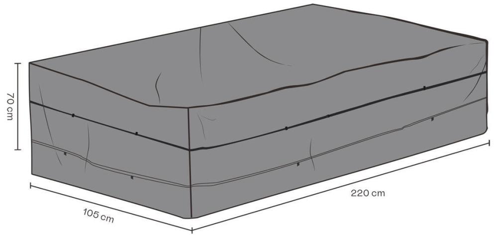 Det lätta materialet som används är en vattentät ripstop polyester (210D) med en baksida av TPU beläggning som gör att det andas och kan transportera ut fukt och förhindra uppkomsten av mögel. Tack vare det lätta och smidiga materialet är det lätt att använda, både när du sätter det på dina utemöbler och när du förvarar det i sin förvaringsväska (som ingår).