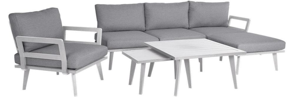 Längre ned på sidan kan du se övriga delar i serien och även några färdiga kombinationer. Några exempel som du kan bygga ihop är en fåtölj (en 1-sits + två armstöd + ett ryggstöd + en ryggkudde), en 2-sitssoffa (en 2-sits + två armstöd + två ryggstöd + två ryggkuddar), en 3-sitssoffa (en 2-sits + en 1-sits + två armstöd + tre ryggstöd + tre ryggkuddar) osv osv.. endast fantasin sätter gränser för hur Villac kan vara en del av din uteplats.