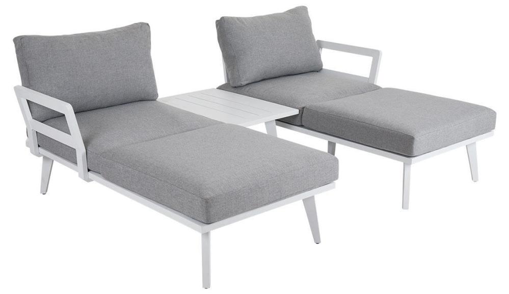 Villac har en underhållsfri stomme av svart eller vit pulverlackerad aluminium. Produktserien baseras på de två sittmodulerna i form av en 1-sits och en 2-sits. Sittmodulerna levereras som standard utan varken rygg- eller armstöd men tjock och skön sittdyna ingår. Använd sittmodulerna som de är eller addera rygg- och armstöd för att bygga din egen kombination av Villac. Det går att kombinera helt fritt med antal rygg- och armstöd för att bilda fåtöljer, soffor och vilsängar. För att göra din sittmöbel komplett finns långa och korta ryggkuddar i flera färger av tåligt olefintyg.