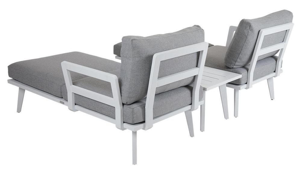 Längre ned på sidan kan du se övriga delar i serien och även några färdiga kombinationer. Några exempel som du kan bygga ihop är en fåtölj (en 1-sits + två armstöd + ett ryggstöd + en ryggkudde), en 2-sitssoffa (en 2-sits + två armstöd + två ryggstöd + två ryggkuddar), en 3-sitssoffa (en 2-sits + en 1-sits + två armstöd + tre ryggstöd + tre ryggkuddar) osv osv.. endast fantasin sätter gränser för hur Villac kan vara en del av din uteplats.