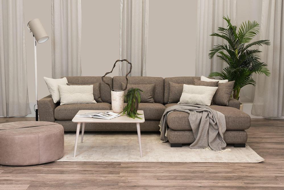 Den sköna soffan Epic har en bekväm sittplymå med en kärna av 35 kg högelastisk formskuren kallskum som är svept med en mix av silikoniserad fiber och fjäder medan ryggkuddarna finns i två alternativ; Casual och Chill.