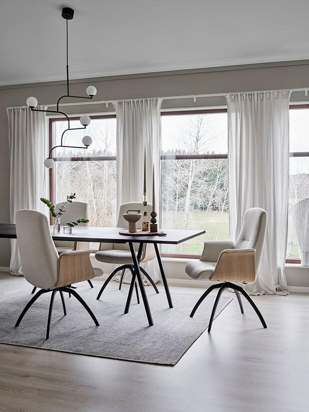 Efter generationer av att tillverka fåtöljer är nu Conform redo att utöka sitt utbud en aning. Men de sträcker sig bara ut några meter eller så, från vardagsrummet till matsalen. Conforms fåtöljer är välkända som den mest bekväma platsen i alla hem. Det är den känslan vi nu bär in till middagsbordet. Inbyggd i ryggen på Freetime är deras unika Syncro Backup-teknik, som gör att stolen smidigt följer din sittkurva. Du kommer alltid att få en ergonomiskt korrekt position, oavsett om du sitter upprätt eller bakåtlutad.