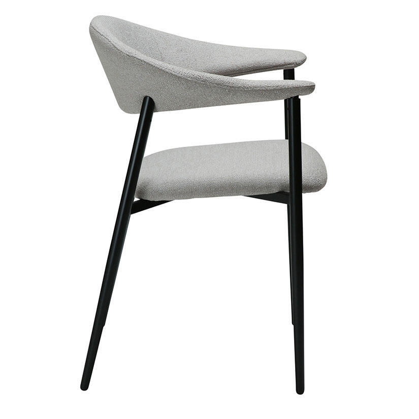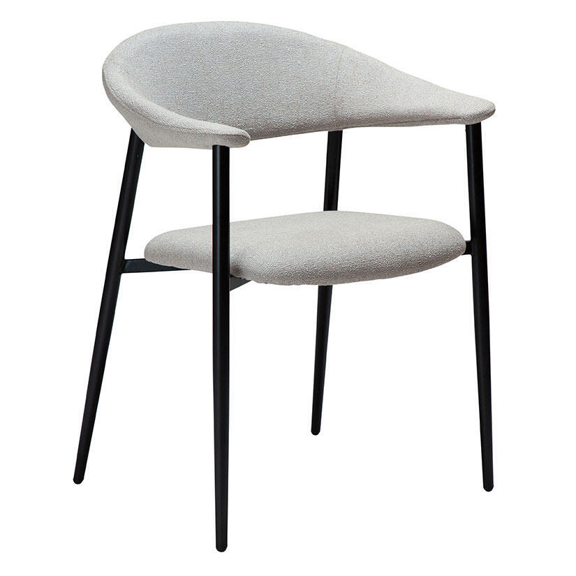Rover karmstol i bouclétyg har en underbar maskulin design. Ryggen vrider sig till bekväma armstöd, och med dekorativa sömmar och en bekväm sits är denna stol en riktig pärla.