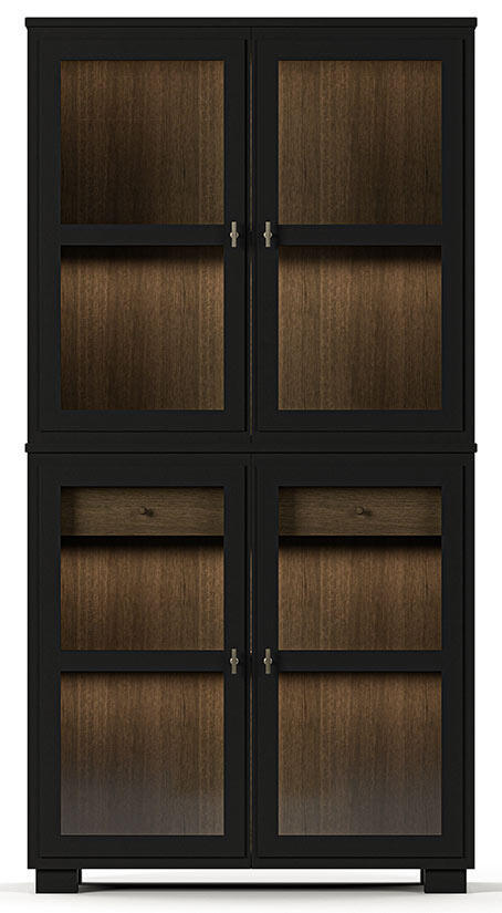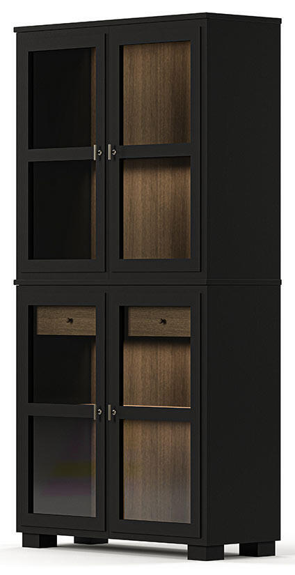 Camden 2+2 glasdörrar + 1 låda Burned Walnut Black Vitrinskåp med belysning
