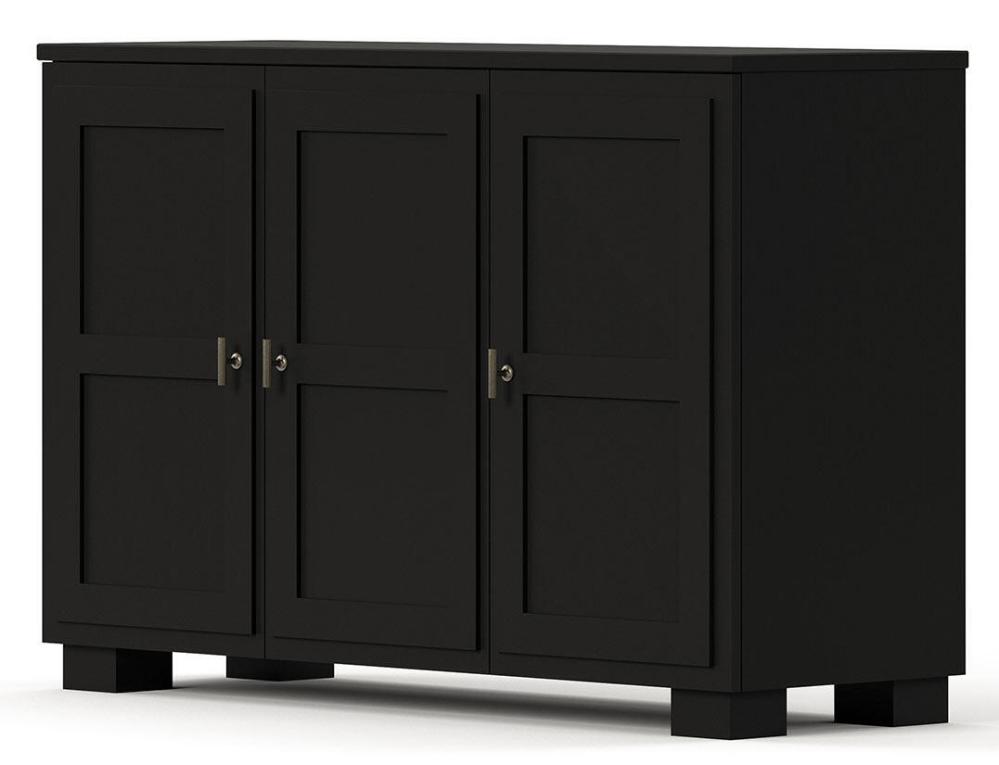 Camden skänk med 3 trädörrar har en tidlös design som kombinerar stil och funktion med generöst förvaringsutrymme. Skänken har tre dörrar: bakom de två vänstra dörrarna finns ett stort utrymme med två justerbara hyllor, och bakom den högra dörren finns ett separat utrymme med ytterligare två hyllor.