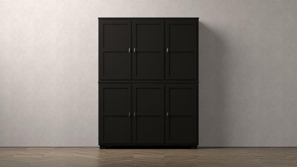 3+3 trädörrar med 4+4 hyllor och 2 lådor
