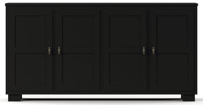 Camden skänk med 4 trädörrar har en tidlös design som kombinerar stil och funktion med generöst förvaringsutrymme. Uppdelad i två separata utrymmen bakom de fyra dörrarna. På var sida finns två justerbara hyllor som gör det enkelt att anpassa förvaringen efter behov. Detta ger gott om plats för allt från porslin till andra föremål.