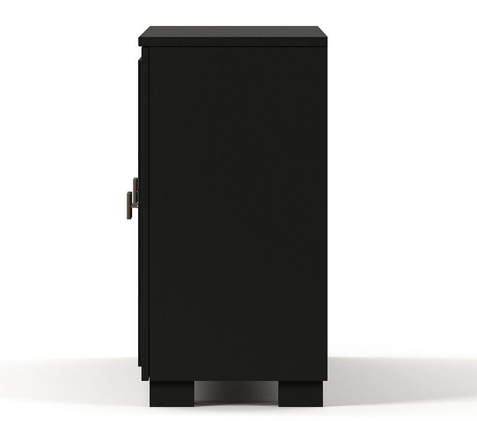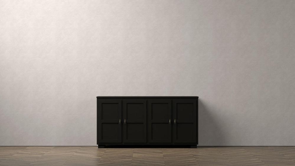 Skänken finns i färgerna White och Black. De eleganta metallhandtagen med patina ger en klassisk touch till den stilrena designen.