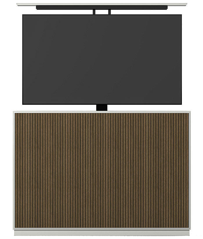 Line finns nu även i utförandet Burned Walnut - fronter i valnötsbetsad ekfanér med sidor i svart eller vit. Överdelen ackompanjeras med benställning eller sockel.