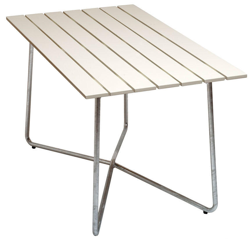 Bordet B25A 120x70 cm från Grythyttans Stålmöbler bygger på Artur Lindqvists ursprungliga design. Bordet passar utmärkt i bersån eller på altanen och med fördel tillsammans med fåtölj A2 eller Stol 1. Bordet bygger på Artur Lindqvists ursprungliga design. B25A tillhör Klassikerserien, har avtagbart stativ för smidig förvaring och går att få i oljelaserad furu eller oljad ek, obehandlad teak och vitlackad ek med varmförzinkat stålstativ.
