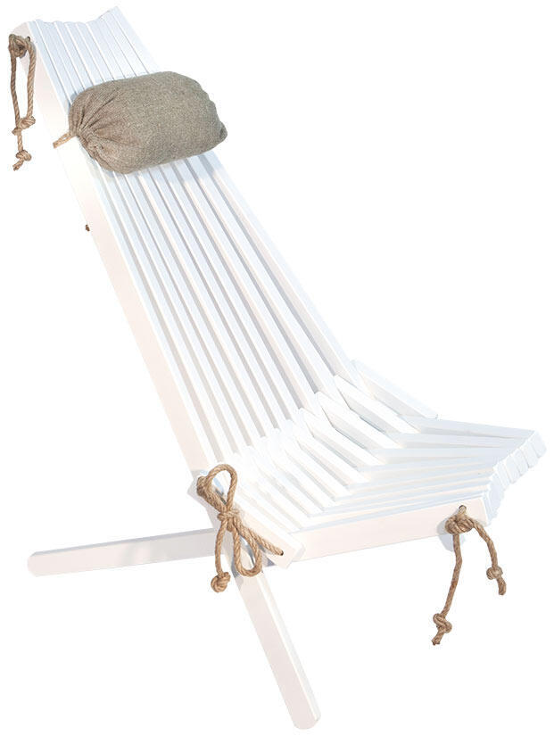 En bekväm och anpassningsbar vilstol som du enkelt kan justera så att den passar din personliga smak genom att dra åt hamparepen. Komplettera med en linnekudde som är speciellt designad för möbeln.