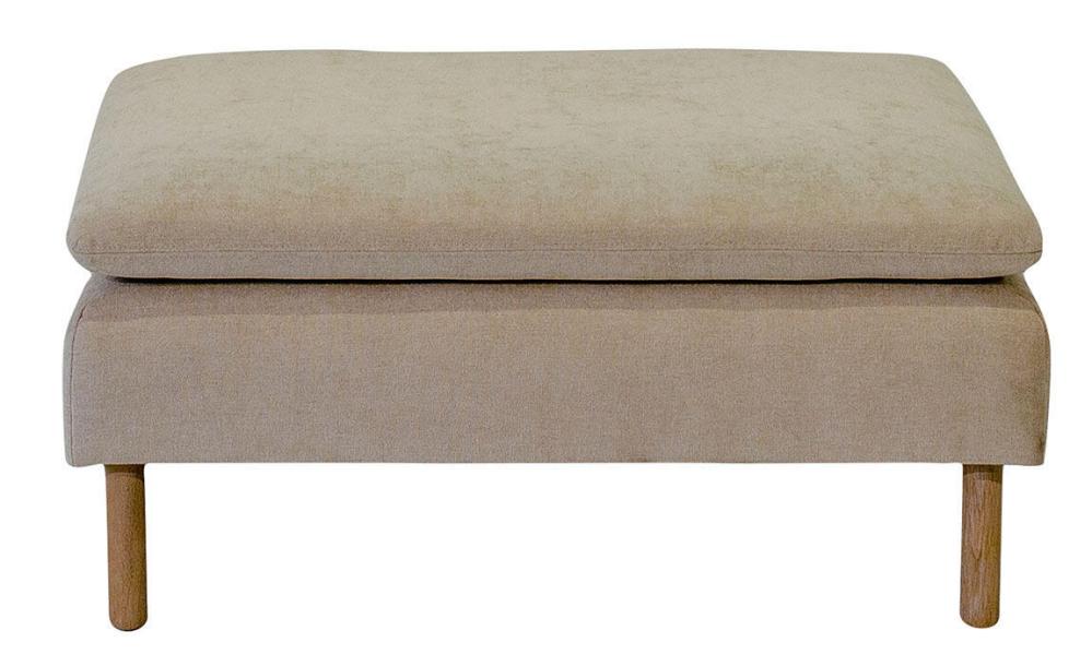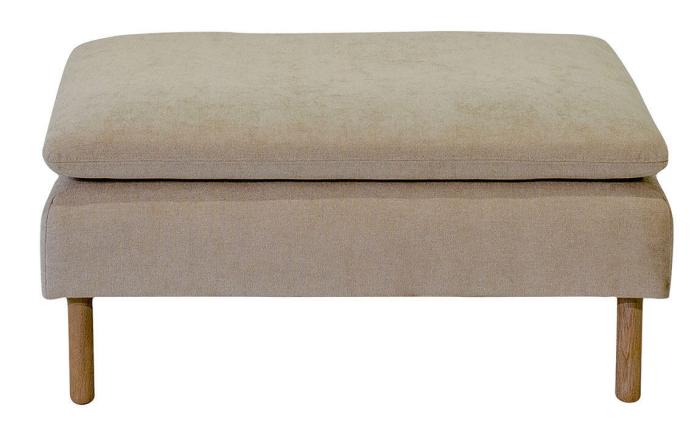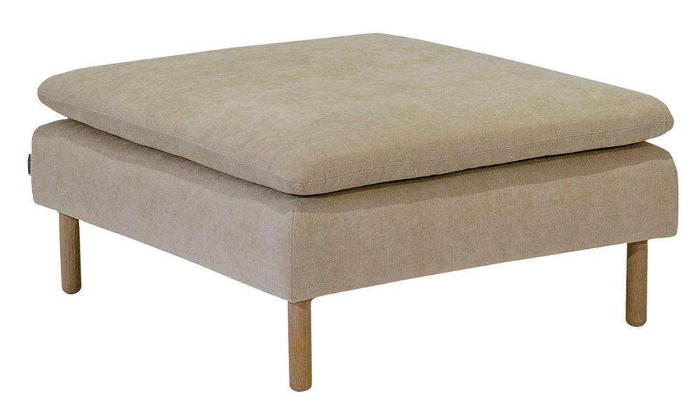 Den här artikeln består av en pall 96x86 cm, inklusive dyna, valfria ben och tyg. På frilagd produktbild visas tyg Elba Natural med vitoljade ekben. Pallen kan kompletteras med en träskiva 96x49 cm.