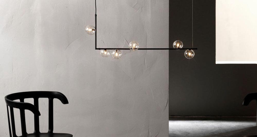 Air 73 lampa från CO Bankeryd. En vacker L formad lampa i svart eller nickel med stora glaskupor.