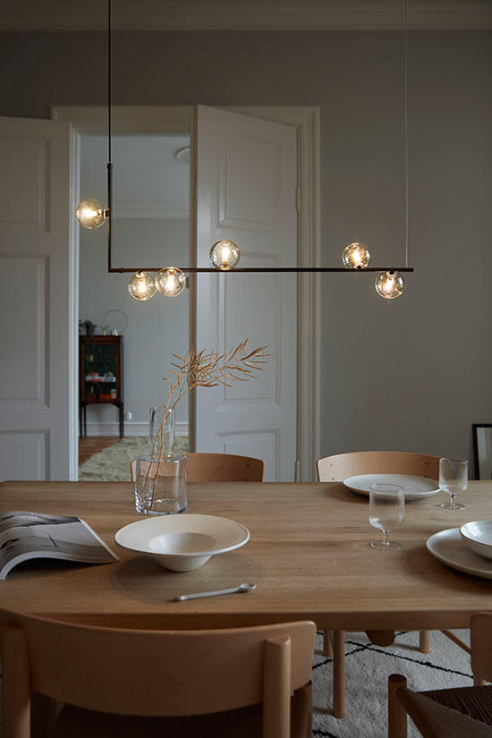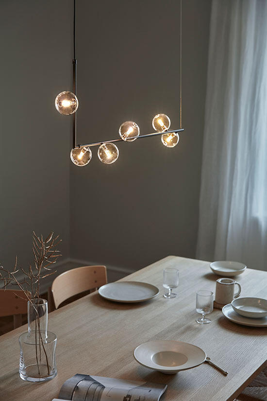 Air är en taklampa som med sin uttrycksfulla design och det minimalistiska snittet skapar karaktär samtidigt som den sprider ett atmosfäriskt ljus. Air kan med fördel hängas över en köksö, över ett matbord i kök eller matsal och blir då en unik inredningsdetalj som lyser upp hemmets samlingspunkt. I par passar Air utmärkt att hängas över ett längre bord eller en disk.