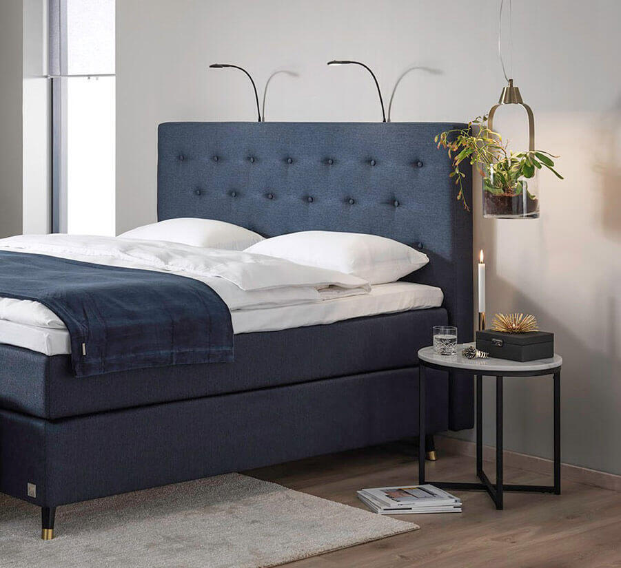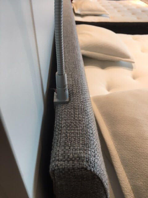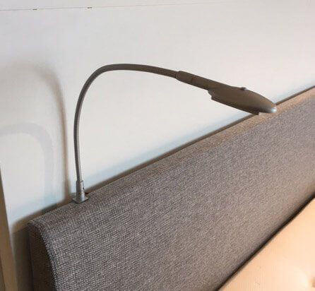 Ställbara sänglampor med LED som enkelt monteras på sänggaveln