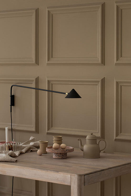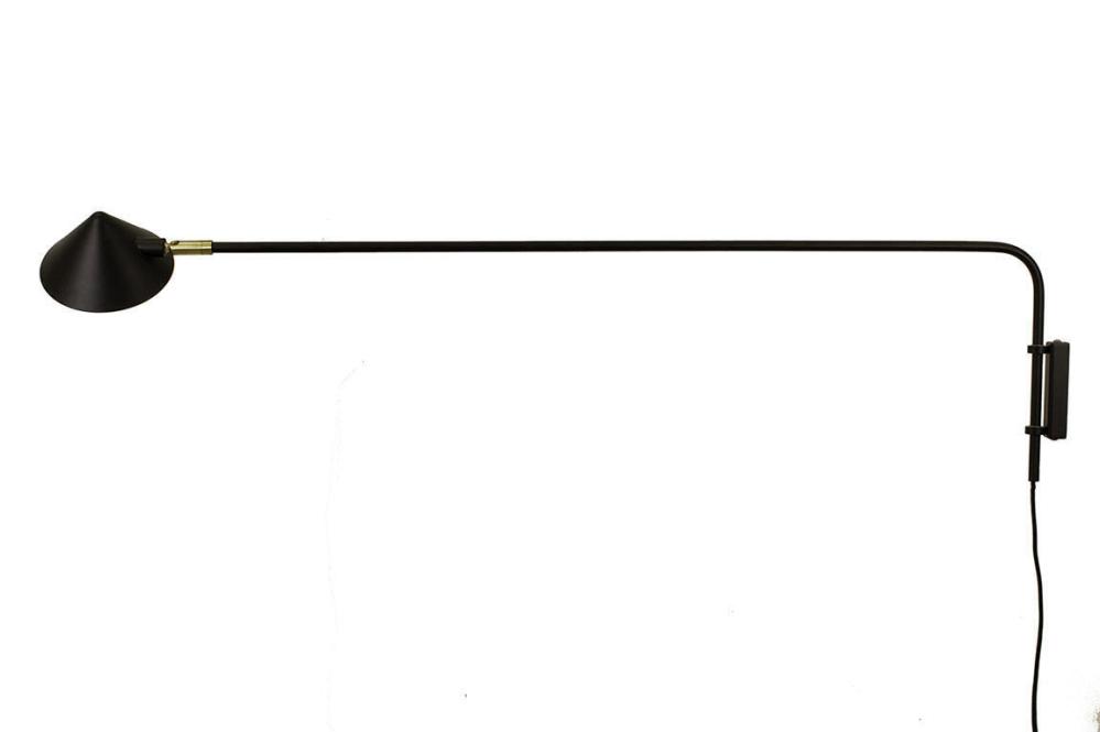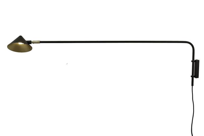 Kelly i långt utförande är en vägglampa för dig som uppskattar långa, vackra linjer och stilren design. Längst ut på en lång, svängbar arm sitter en toppig liten lampskärm med guldfärgad insida för ett varmt och härligt ljusutbyte. Så snyggt och grafiskt! Placeras gärna ovanför en soffa eller fåtölj eller kanske över bänken i köket. Textilsladden är pricken över i:et. Kellys skärm är rörlig åt alla håll. Dimmer för att växla mellan läsljus och mys.