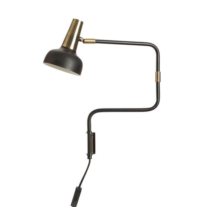 Ray är en justerbar vägglampa i vit eller svart med mässings- eller nickeldetaljer.