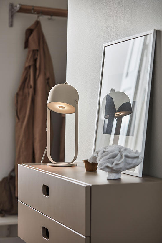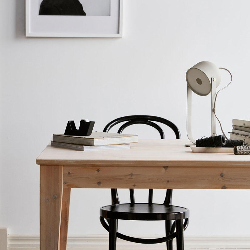 Svejk bordslampa ger en sober skandinavisk känsla i rummet och skapar både ljus och karaktär. Svejk bordslampa har ett mjukt sken och fungerar både som läslampa och som en dekorativ inredningsdetalj. Passar i ett sovrum, på ett sängbord, ett skrivbord, i ett fönster eller som dekorationsbelysning på ett mindre bord eller sideboard i hall eller vardagsrum. Svejk är en del av en större produktfamilj.