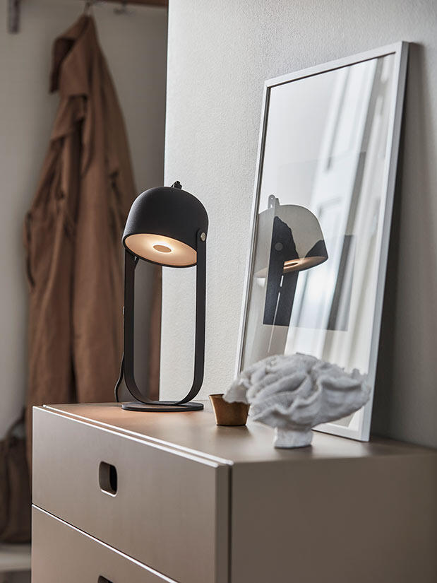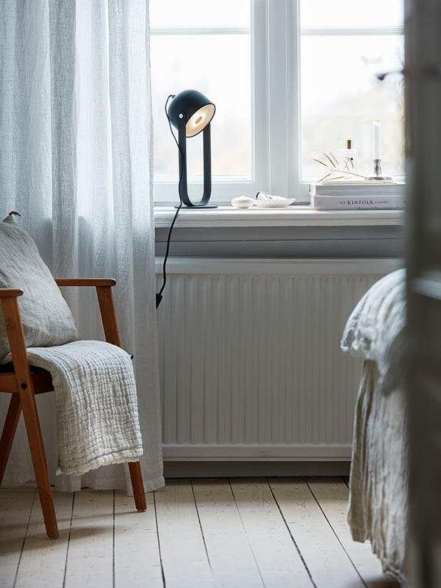 Svejk bordslampa ger en sober skandinavisk känsla i rummet och skapar både ljus och karaktär. Svejk bordslampa har ett mjukt sken och fungerar både som läslampa och som en dekorativ inredningsdetalj. Passar i ett sovrum, på ett sängbord, ett skrivbord, i ett fönster eller som dekorationsbelysning på ett mindre bord eller sideboard i hall eller vardagsrum. Svejk är en del av en större produktfamilj.
