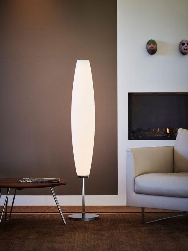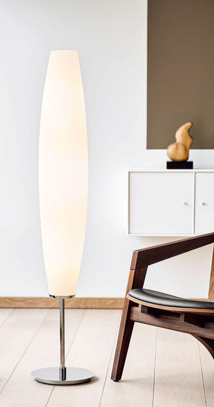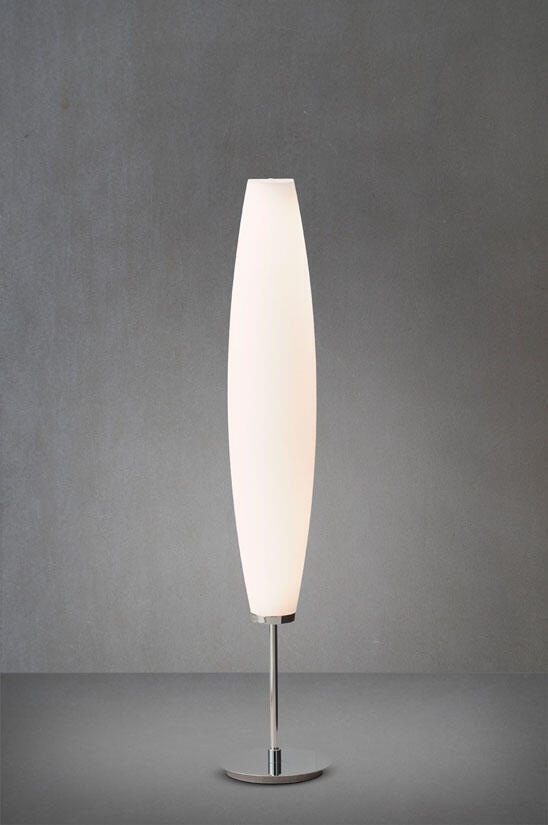 Zenta är en dekorativ och klassisk golvlampa som utnyttjar LED-tekniken till sin fulla potential. Lampan ger ett diffust omgivande ljus på grund av det krökta handgjorda glaset med tredubbla skikt.