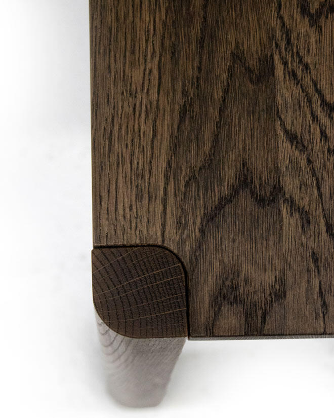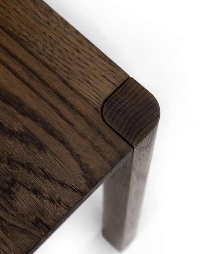 Med sin tidlösa design, raka linjer och mjukt rundade hörn blir Adapt ett elegant och funktionellt inslag i hemmet. De vackert infasade benen i bordsskivan vittnar om ett genuint hantverk där varje detalj är noggrant utformad för att hålla över tid.