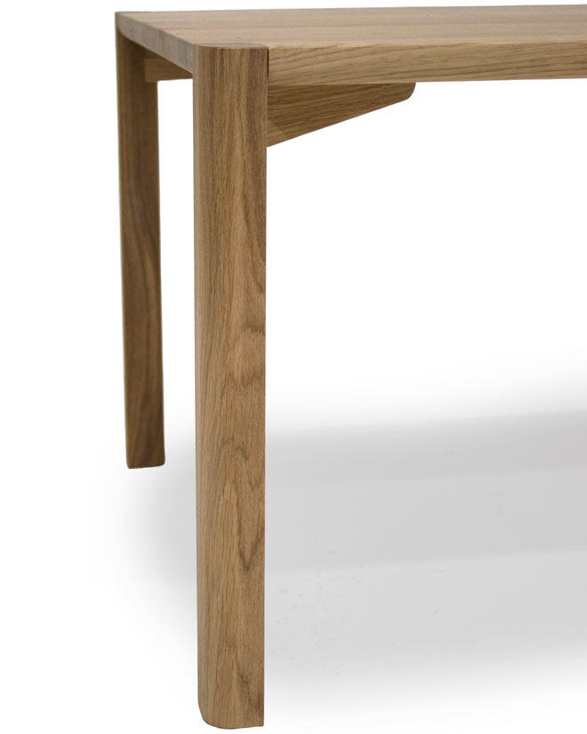 Med sin tidlösa design, raka linjer och mjukt rundade hörn blir Adapt ett elegant och funktionellt inslag i hemmet. De vackert infasade benen i bordsskivan vittnar om ett genuint hantverk där varje detalj är noggrant utformad för att hålla över tid.