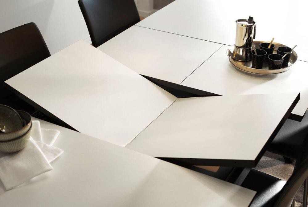 Matbordet Bornholm är ett stilrent och trendigt bord med smart mekanism. Iläggsskivorna förvaras inuti bordet, viks upp med ett lätt handgrepp. Med bordet maximalt utfällt får det plats 8 personer runt bordet. Pris inkl. 2 iläggsskivor med butterflykonstruktion.
