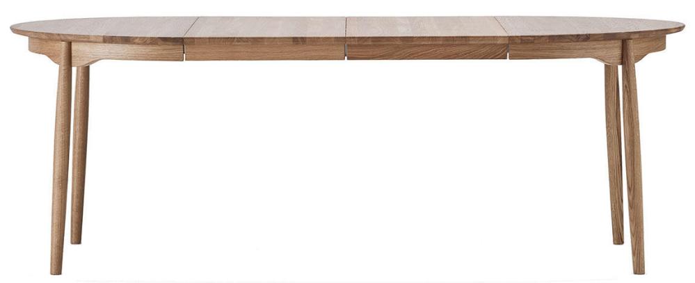 1. Carl bord är runt i sitt grundutförande. Bordet kan förlängas med upp till 4 iläggsskivor allt efter behov.