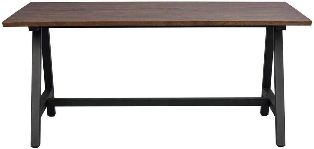 Carradale matbord 170x100 cm i brunoljad FSC-certifierad ek. Tvådelad massiv bordsskiva med borstad yta och A-formade ben i svart pulverlackad metall. Den stabila benställningen ger bordet en trygg känsla. Bordsskivan kan kompletteras med 1 eller 2 tilläggsskivor à 50 cm vilket kan göra bordet upp till 270 cm långt.