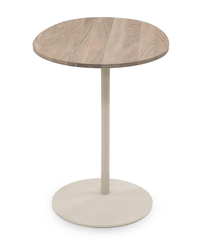 Det svartlackade eller cashmerefärgade metallstativet gör bordet stabilt och elegant tillsammans med den droppformade bordsskivan av massiv ek. Eken kan väljas i flera olika ytbehandlingar för att få ett bord som matchar dig och din inredningsstil allra bäst!