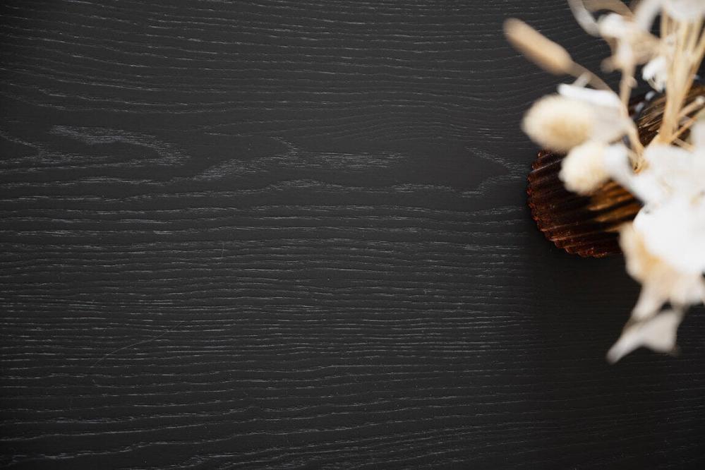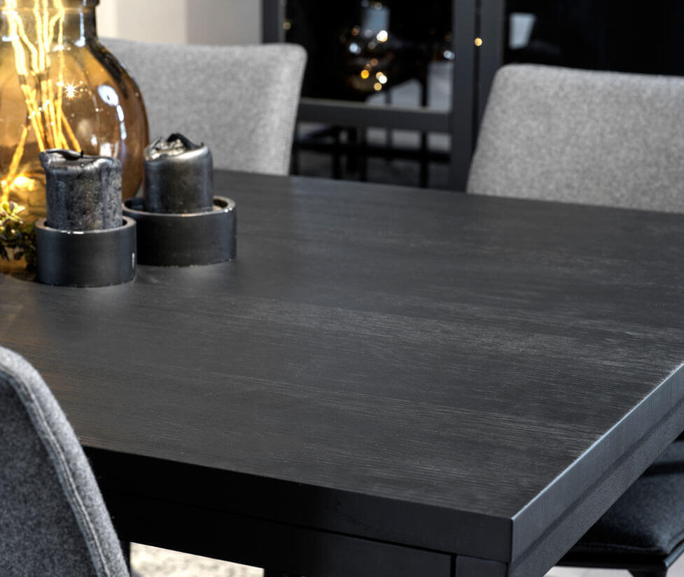 30mm tjock massiv svartlackad europeisk ask, hela lameller från kant till kant. Stålborstad yta, med svarta pulverlac...