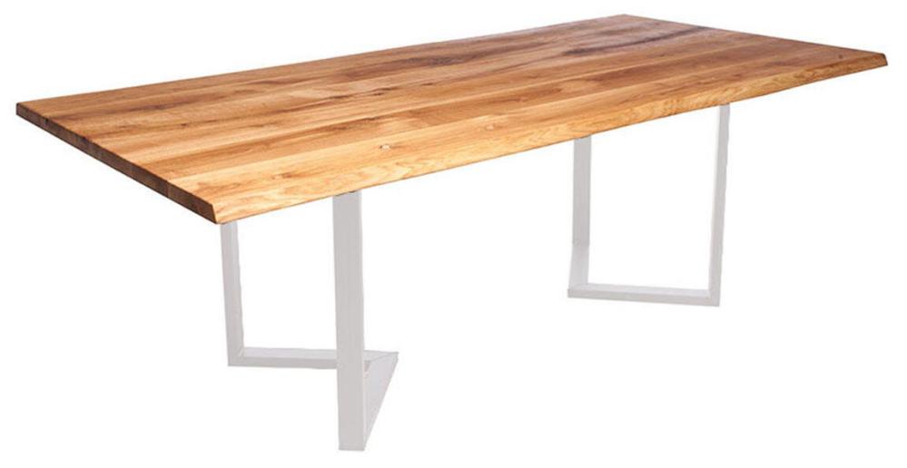 Borden tillverkas i Europa och är en harmonisk fusion mellan trä och metall i en modern stil. Bordsskivan kan fås i Europeisk ek eller Amerikansk valnöt och med möjlighet till en personlig utformning. Vidare kan det fås med hel eller delad skiva och med flera olika typer av bordskanter. Borden kan anpassas ytterligare efter din personliga smak genom att välja fyllnadsmaterial, eller genom att lämna kvistar och sprickor obehandlade för en mer rustik känsla. Bordsskivan oljas in för att ge både en slitstark och vacker yta. Kontakta oss om du istället önskar en klarlackad eller betsad yta.