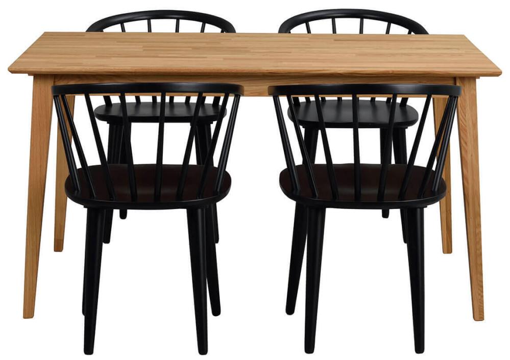 I paketet ingår matbordet Filippa 140x90 cm i ek och fyra stycken Carmen matstolar i valfri färg.