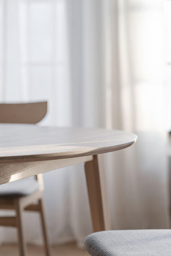 Bordet består av massiv fingerskarvad ek som behandlats med vitpigmenterad olja. Matbordet ingår i produktserien Filippa från Rowico Home. Matbordet består av 100% FSC-certifierat trä och är ett bra och hållbart val.
