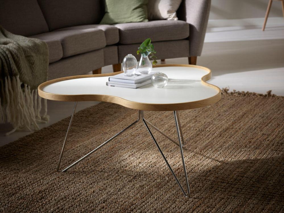 Organiska former, stjälkliknande ben och skiktlimmat laminat; Flower är bordet med såpass egen design och konstruktion att det har blivit ett signum för Swedese. Flower finns i två höjder, två färger på bordsskivan, tre färger på sargen och fyra på underredet, vilket skapar möjligheter att leka med linjer och mönster när du placerar dem tillsammans. Flower finns även i flera storlekar på bredden samt bordsskiva helt i ask eller ek.