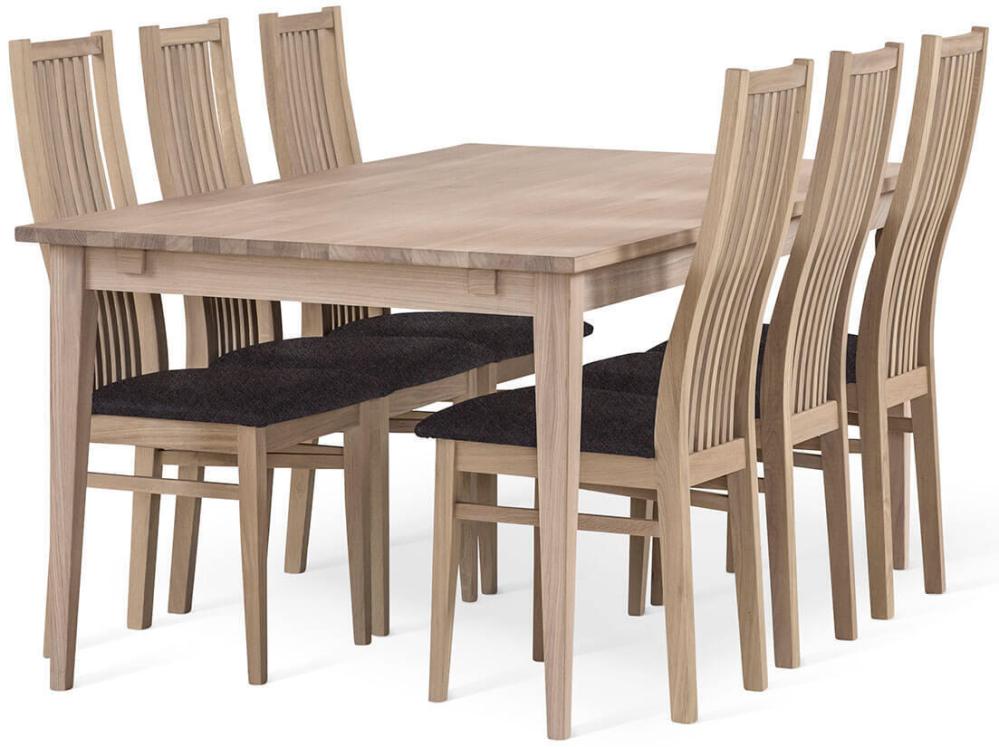 Rektangulära bordet Garda i vitoljad massiv ek är ett matbord med klassisk formgivning från svenska Torkelson. Bordet har en rejäl bordsskiva av massiv helstavad ek med rak kant som ger ett stilrent uttryck som sedan oljats in med vitolja som ger den ljusare och modernare stilen. Benen är fyrkantiga med en något konad form som ger en luftig känsla.