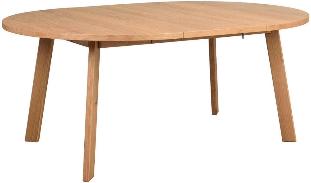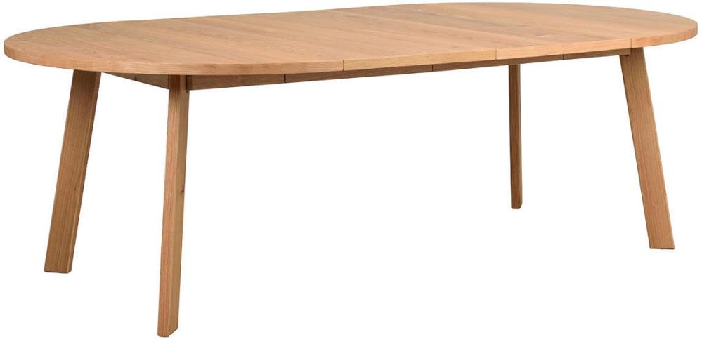 Massiv ek i ben och sarg, spånskiva med ekfaner i topp. Utdragsregel i metall för 2 ilägg