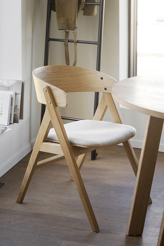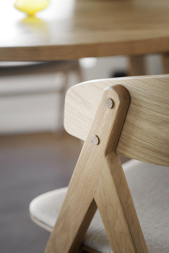 Tack vare att trä med synliga kvistar har tagits tillvara i tillverkningen så har varje bord en unik träkänsla. Bordsskivan är semimassiv och det innebär att toppen består av 3 mm massiv ekfaner, vilket gör den mycket hållbar. Högkvalitativt och hållbart – detta är ett matbord att använda och älska i många år framöver. Finns även i brunoljad ek.