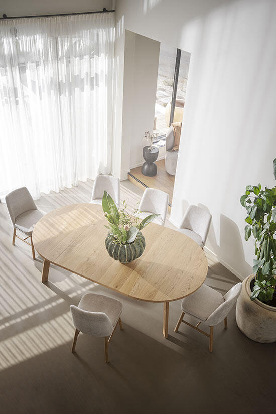 Skapa gemenskap och utrymme för fler genom att köpa till 1 eller 2 iläggsskivor och omvandla matbordet till ett stort ovalt bord.