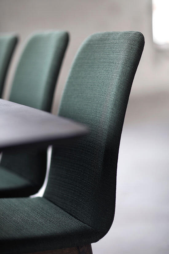 Matgruppen Hampton är den perfekta gruppen till det moderna hemmet. Det stilfulla matbordet Hampton har här kombinerats med köksstolarna från samma möbelserie, en elegant kombination av rökt ek och grön eller beige tygklädsel. Bordet som har behandlats med ett tunt lager av mattlack för extra tålighet har en fin bågformad design med vinklade ben. Stolarna i gruppen har en matchande formgivning såväl som hög komfort, den höga ryggen och stoppade sitsen gör att sällskapet stannar länge. Stolen är klädd i två naturnära färger av det slitstarka tyget Portland.