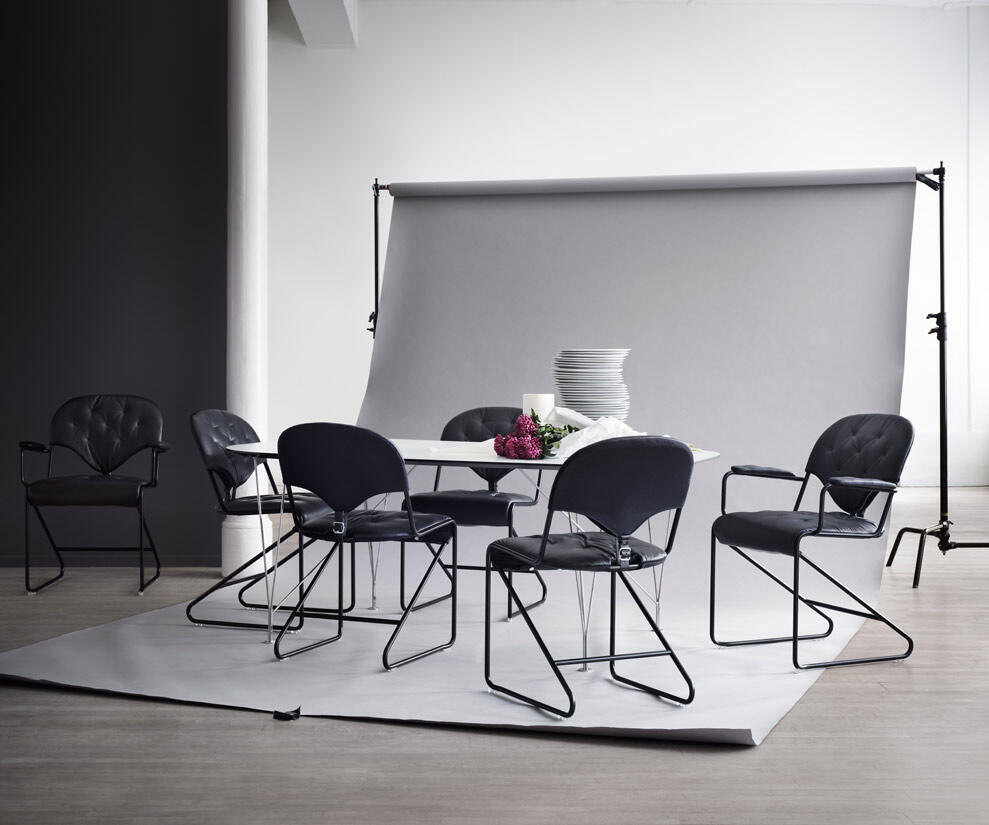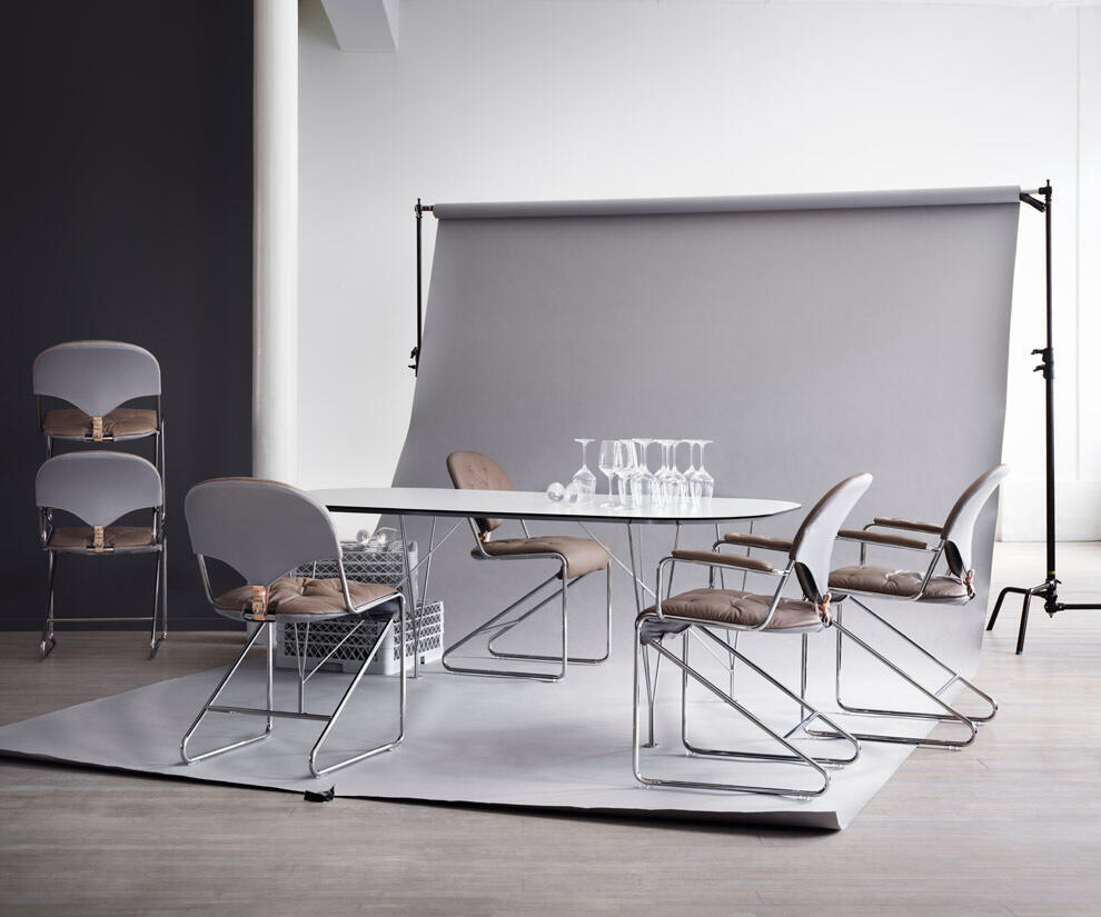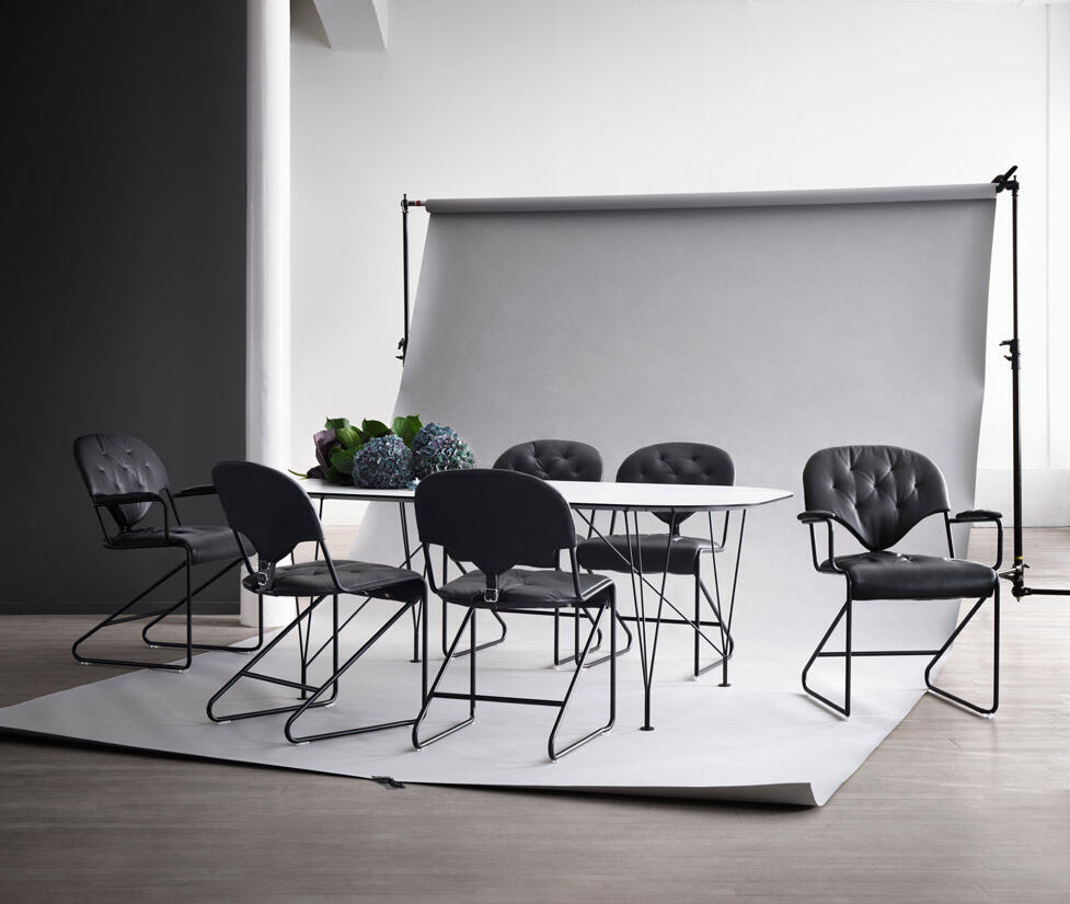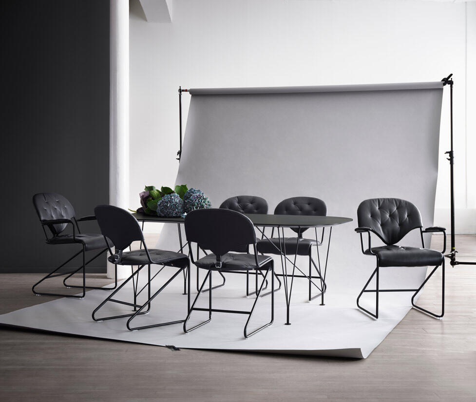 Bord Inter från DUX finns i tre olika storlekar. Ett rund och två rektangulära varianter, varav ett av dessa är ett förlängningsbart bord, inkl. två iläggsskivor. Stativ i krom eller svart med högkvalitativ nanolaminat skiva i vit eller svart med svart kant. Nanolaminat är tåligt mot repor och värme, har en skön sammetslen yta och inga fingeravtryck lämnas synliga. Inter passar bra till många stolar, särskilt stolen DUX" target="_self">Sam med eller utan karmar.