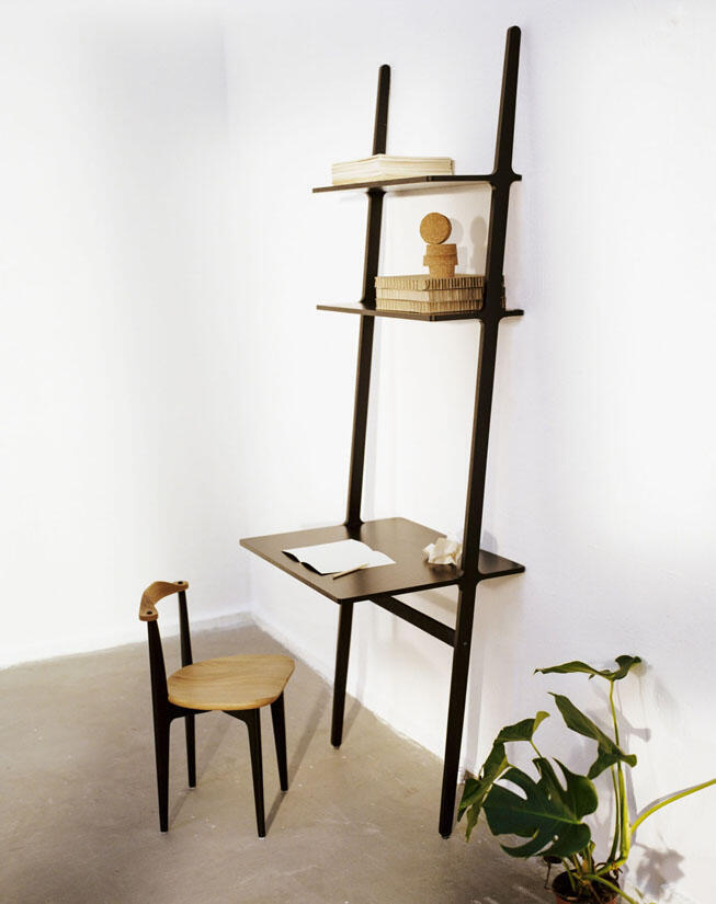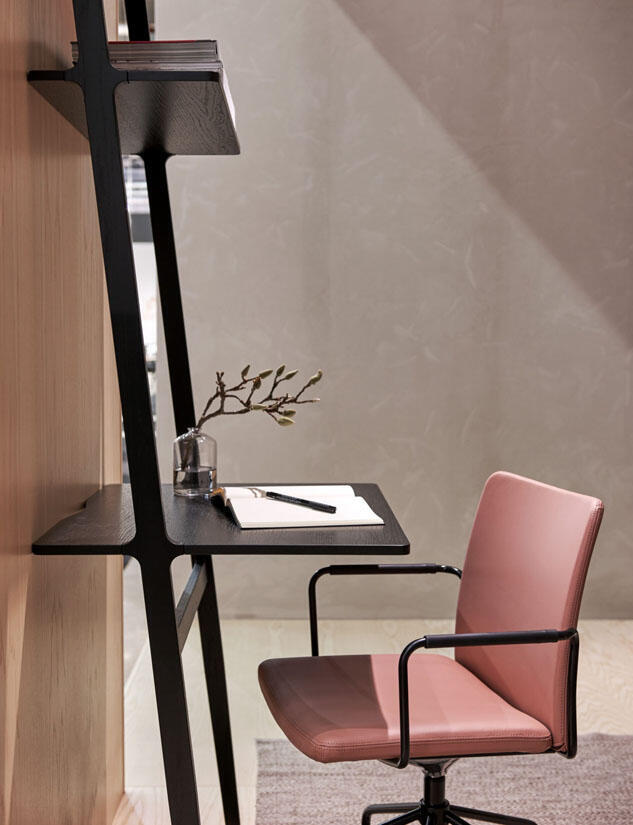 Ett skrivbord har lagts till i Libri-familjens förvaringshyllor. De nya delarna kompletterar en unik förvaringslösning som tillåter många olika uttryck och konfigurationer. Libri kan användas som en enkel hylla som lutas mot väggen likt en stege, men går även att kombinera med andra hyllor för att bilda en bokhylla längs en vägg eller en avgränsande rumsavdelande hylla som sticker ut från väggen.