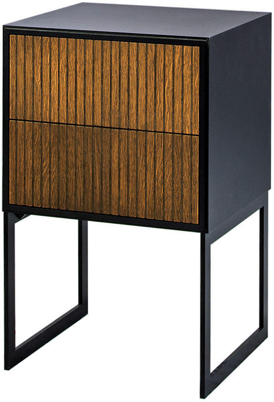 Line finns nu även i utförandet Burned Walnut - fronter i valnötsbetsad ekfanér med sidor i svart eller vit. Överdelen ackompanjeras med benställning eller sockel.